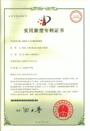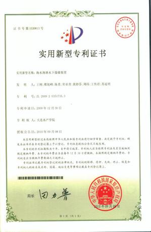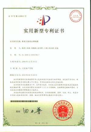 (1)框架式海珍品增殖礁,ZL 2009 2 0351738.7。