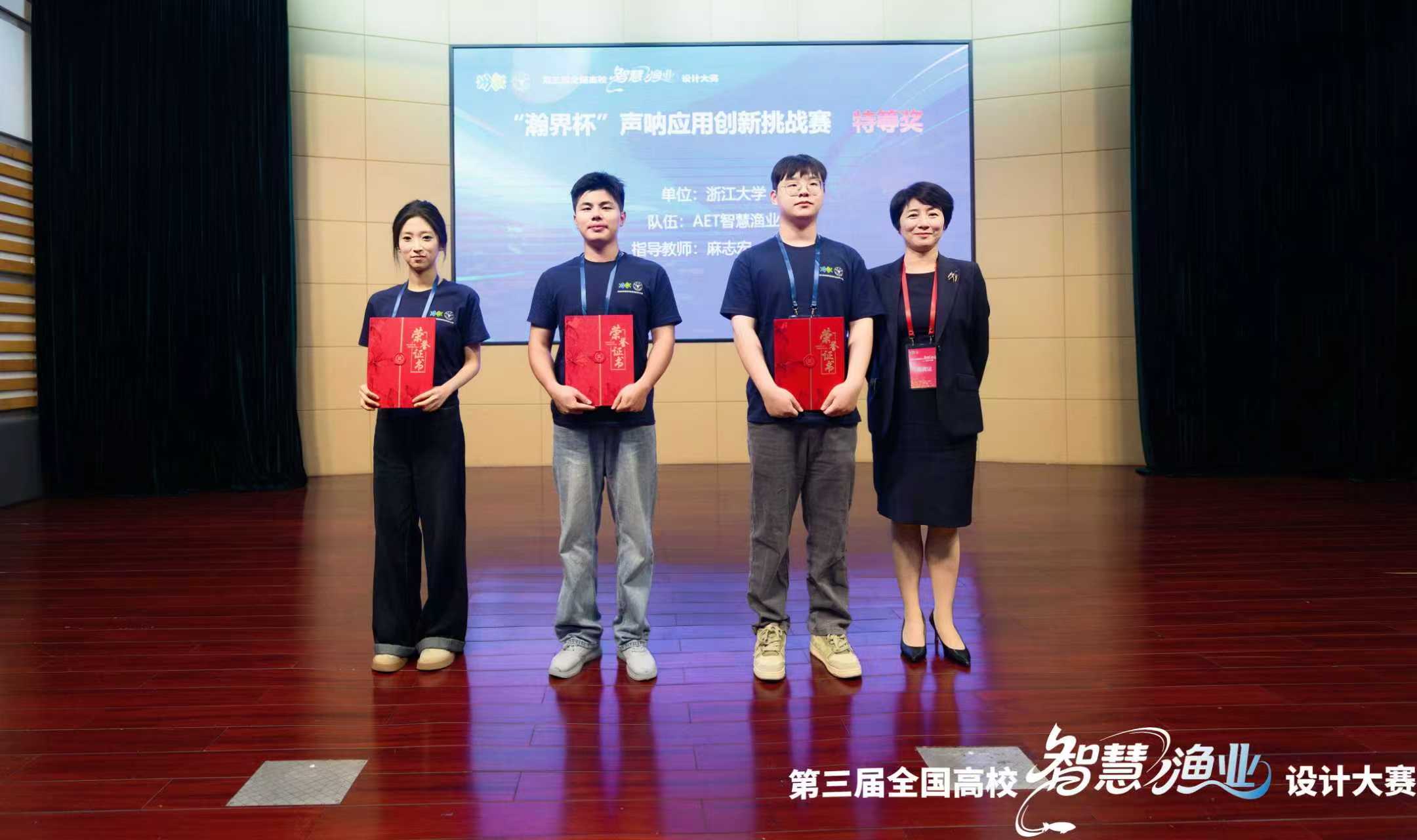全国高校智慧渔业设计大赛是一场专注于智慧渔业领域的创新设计竞赛。竞赛旨在激发员工的创新潜力,运用最前沿的大数据、人工智能等信息技术来解决水产养殖业中的实际问题,围绕精准化养殖、可视化管理和智能化决策等方面,设计出具有前瞻性和实用性的智慧渔业解决方案。“AET智慧渔业”联合团队勇夺国家级赛事最高荣誉,彰显了学院在海洋科技领域的创新实力。这一成绩不仅为学校赢得了荣誉,更标志着公司在智慧渔业与声呐技术融合领域的研究与创新人才培养达到国内领先水平。