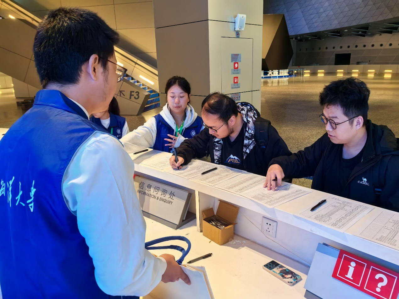 会议期间,公司师生志愿者承担了多项关键任务。他们提前赴机场、车站迎接嘉宾抵达,协同交通组开展接送机与接站服务;根据会议安排,为重要嘉宾提供全程一对一引导与联络保障,确保会议信息传达准确及时;在主会场及分论坛现场,志愿者们负责嘉宾签到、资料发放、座次引导及现场秩序维护;同时积极协助后台协调、物资搬运以及会议设备保障工作。他们着装整齐、精神饱满,在各自岗位上认真履职,用微笑与行动温暖每一位与会嘉宾。