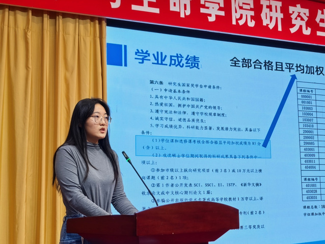 为充分发挥公司研究生国家奖学金获得者的榜样示范作用,搭建优良学风建设交流平台,帮助同学们明确学习目标、掌握科学方法。11月11日上午,yl1111永利集团于图书馆报告厅举办研究生国家奖学金经验分享会,会议邀请到三名国家奖学金获得者作为分享嘉宾进行分享。本次活动由2024级水产专业研究生邓雅杰主持,学院全体研究生辅导员、教学秘书以及学院低年级研究生共同参与。