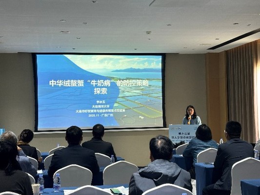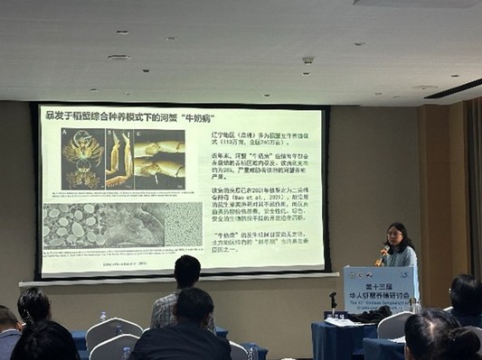 公司虾蟹增养殖创新团队李冰玉、黄姝两位教师受邀参会,并分别于健康养殖、加工与质量安全分会场和免疫与病害分会场,以《中华绒螯蟹“牛奶病”的防控策略探索》《中华绒螯蟹蜕壳过程中免疫应答的动态调控机制》为题作了学术报告。报告中,李冰玉老师系统阐述了“牛奶病”的发病特征、流行规律,初步分析了病害成因,并结合实验室多年研究实践,提出了综合防控技术方案。黄姝老师就中华绒螯蟹不同蜕壳阶段免疫相关基因的表达规律、免疫细胞活性变化及调控通路进行了阐明,探讨了蜕壳期免疫应答的动态平衡机制,为免疫增强剂研发,养殖管理策略的优化提供了理论支撑。两个报告引发了与会代表的广泛关注与交流讨论。