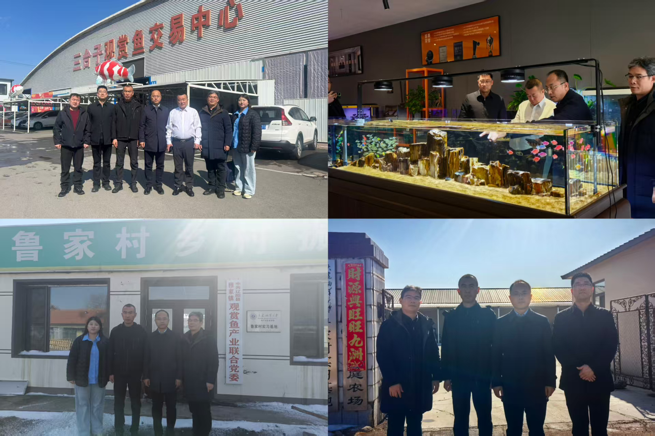 3月18日,yl1111永利集团党委书记刘宪杰、副书记王涛、副院长叶仕根、水生动物医学系副主任郭志新一行四人赴鞍山三台子观赏鱼交易中心开展访企拓岗暨党建共建交流活动。